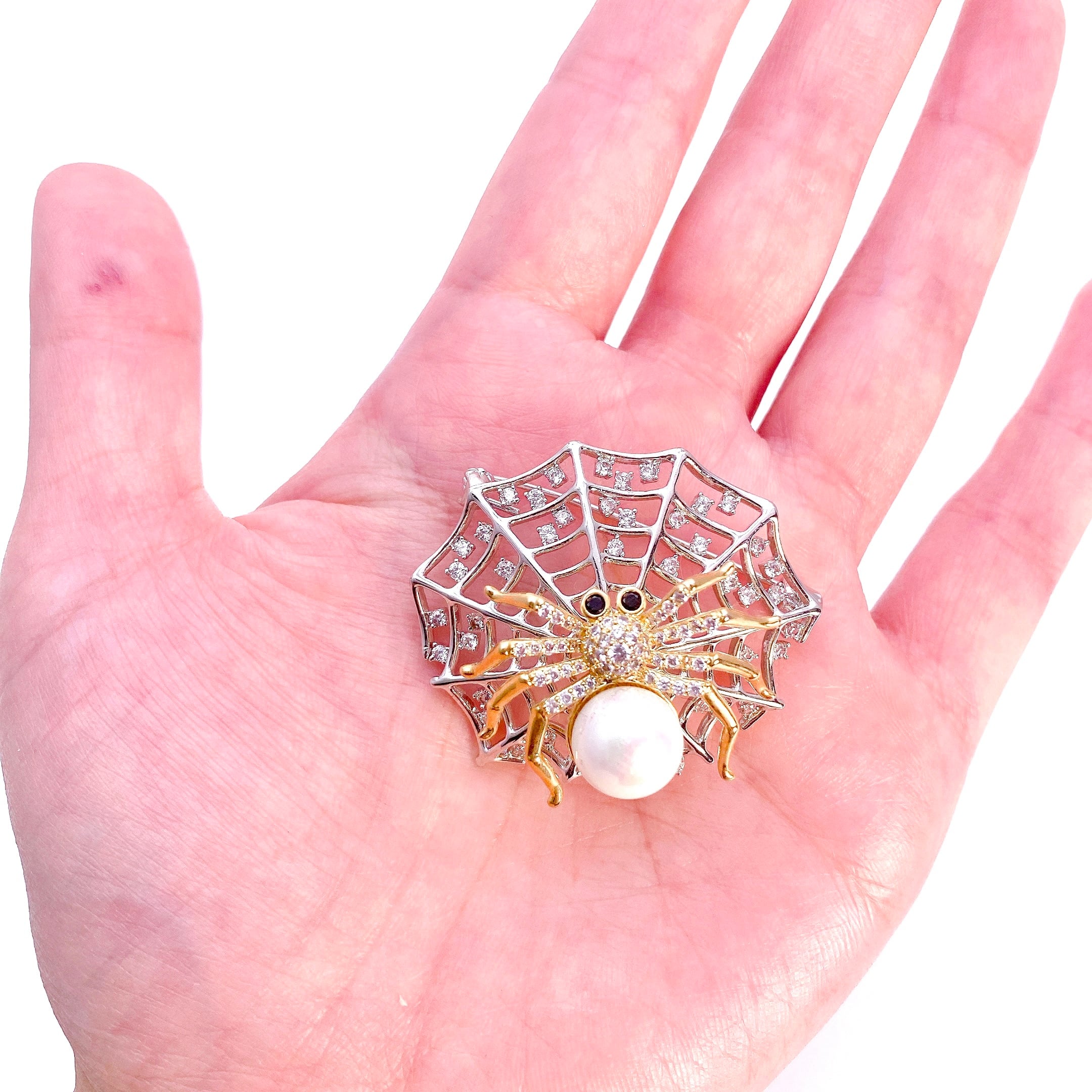 立派な巣に住むクモのブローチです。